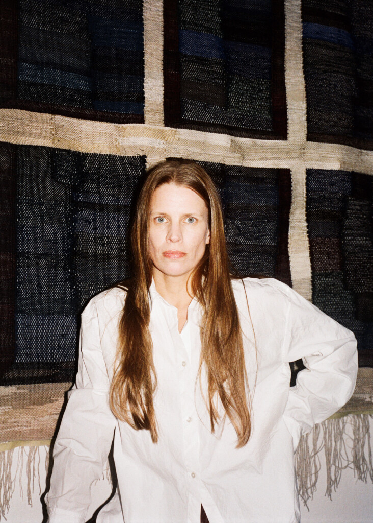 Sjöberg often uses herself as material. Through year-long performative projects, she adopts different roles–for example, a businesswoman in Gtd4s810 (2009 – 2011) or a tattoo artist in Salong Flyttkartong (2012 – 2014)–to explore how a personality is created and lived in practice. After these performative phases, she creates physical works in the form of weavings, collages, and installations, where textiles, clothing, and personal objects become parts of an archive of memories and layers of life. Her works address themes such as heritage, loss, and class, often connecting to her family history and upbringing in northern Sweden. In Sjöberg’s artistic practice, life and art are literally woven together, with the materiality bearing traces of labour, transformation, and time.